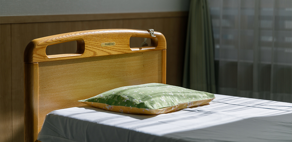 スタッフの見守りのもと、安心して就寝。夜間も巡回や見守りで安全を確保しています。